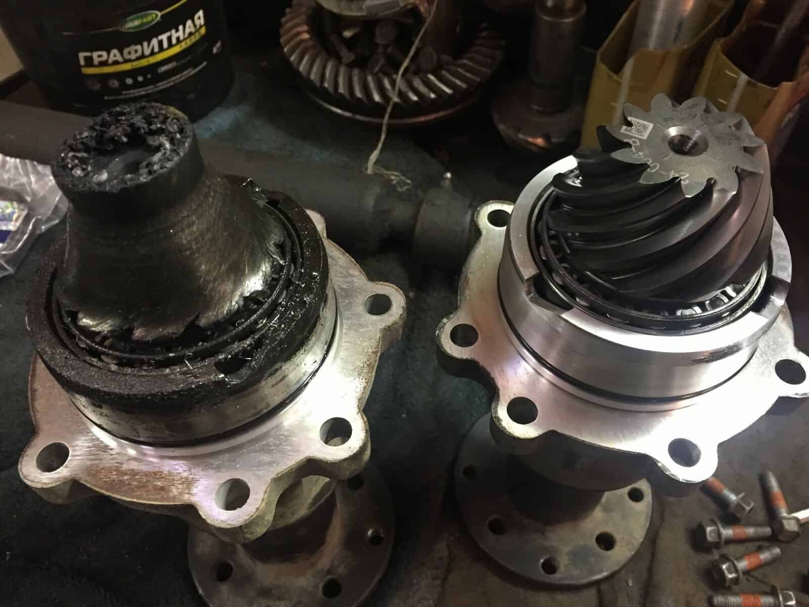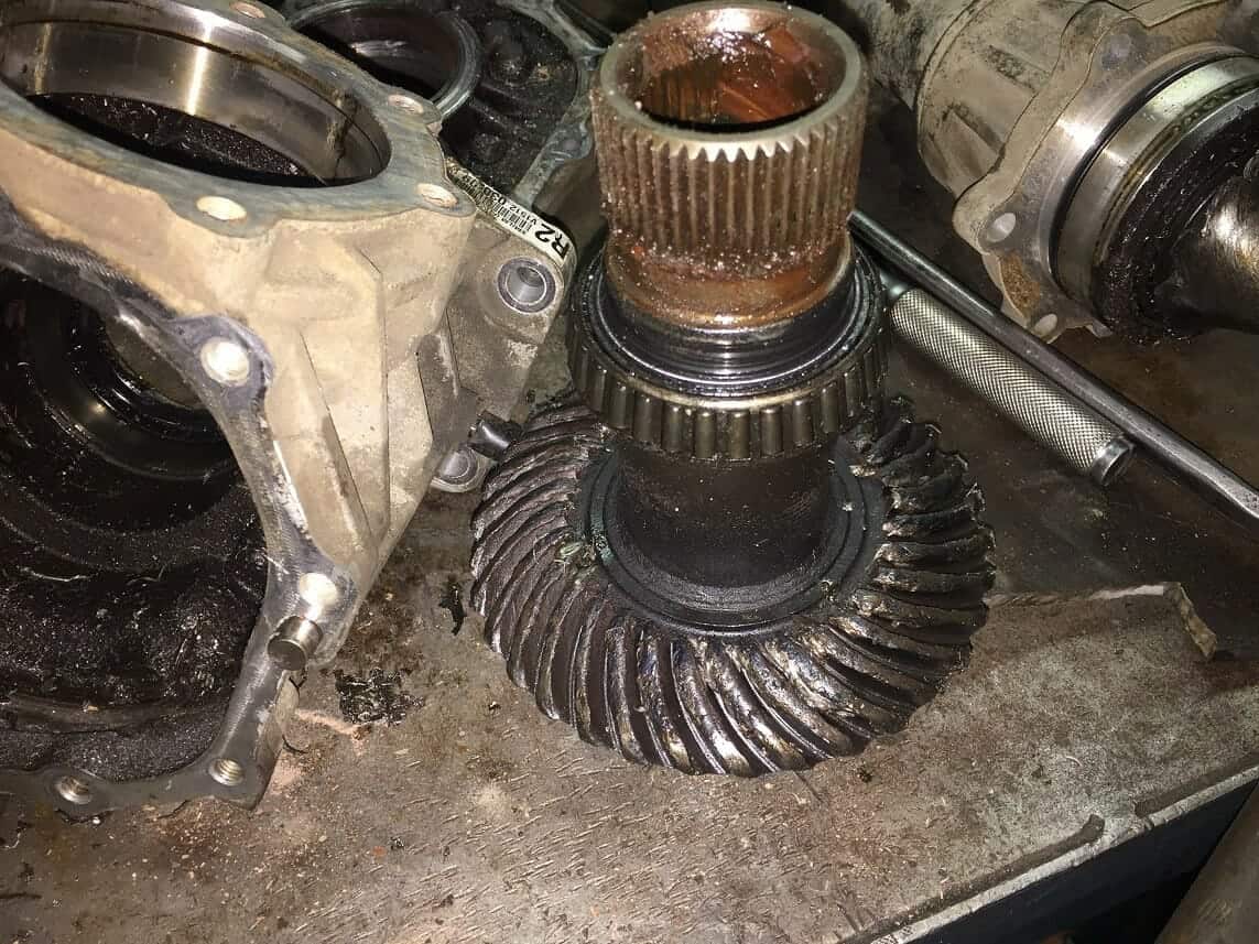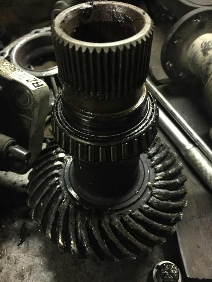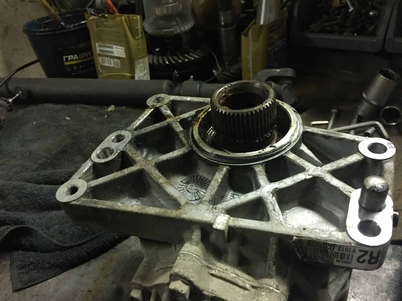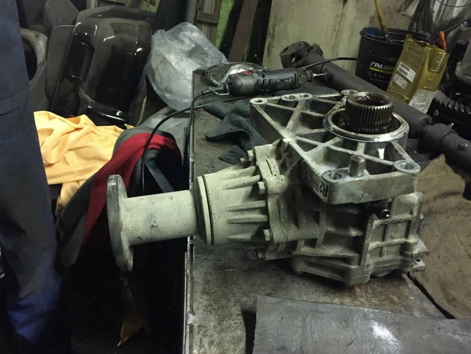 Киа Соренто приехал к нам на замену корпуса дифференциала. Диагностику мы не делали, запчасти были куплены со слов клиента. Во время разборки раздаточной коробки увидели следующее….. Масла в раздаточной коробке не было.