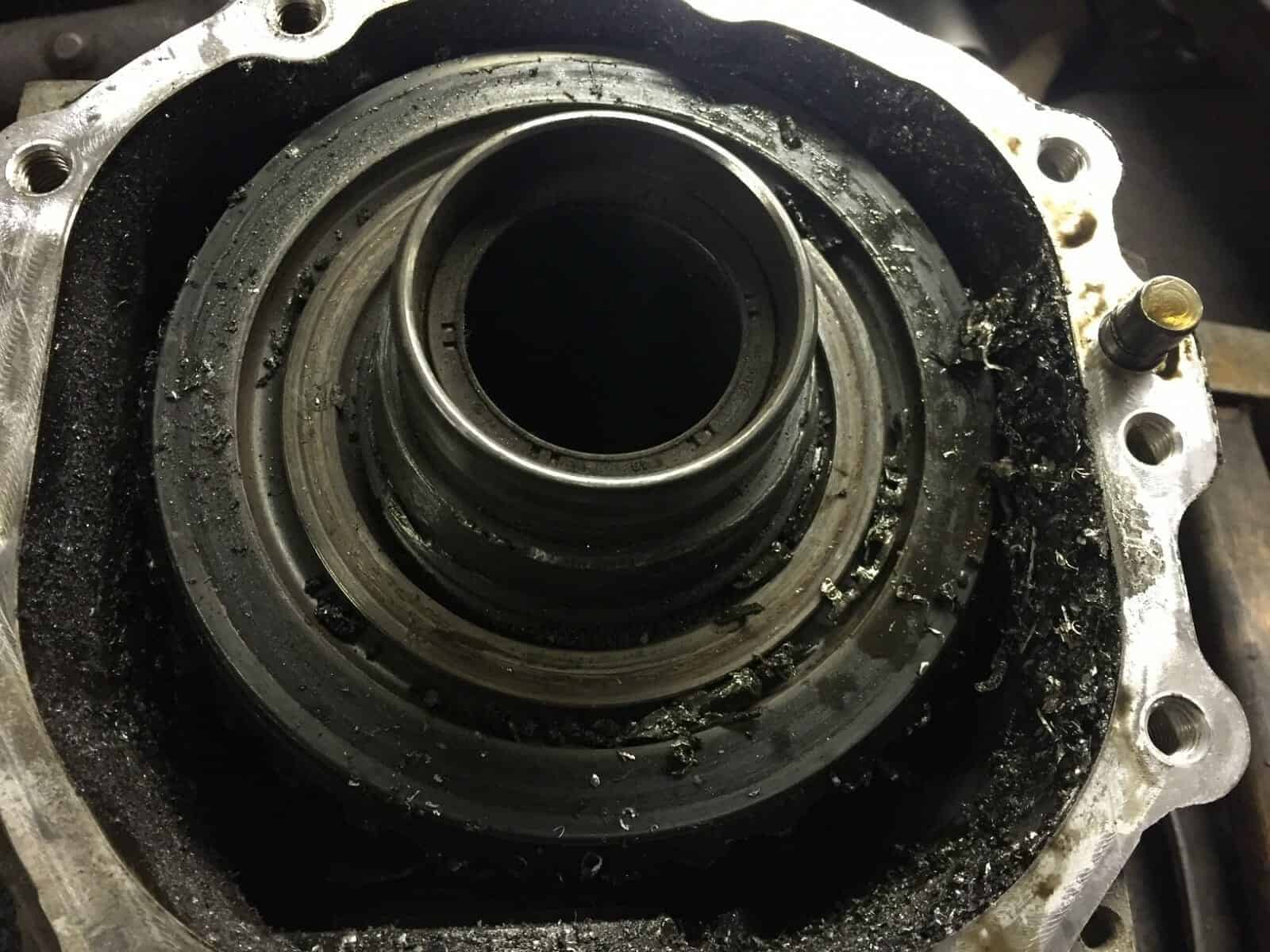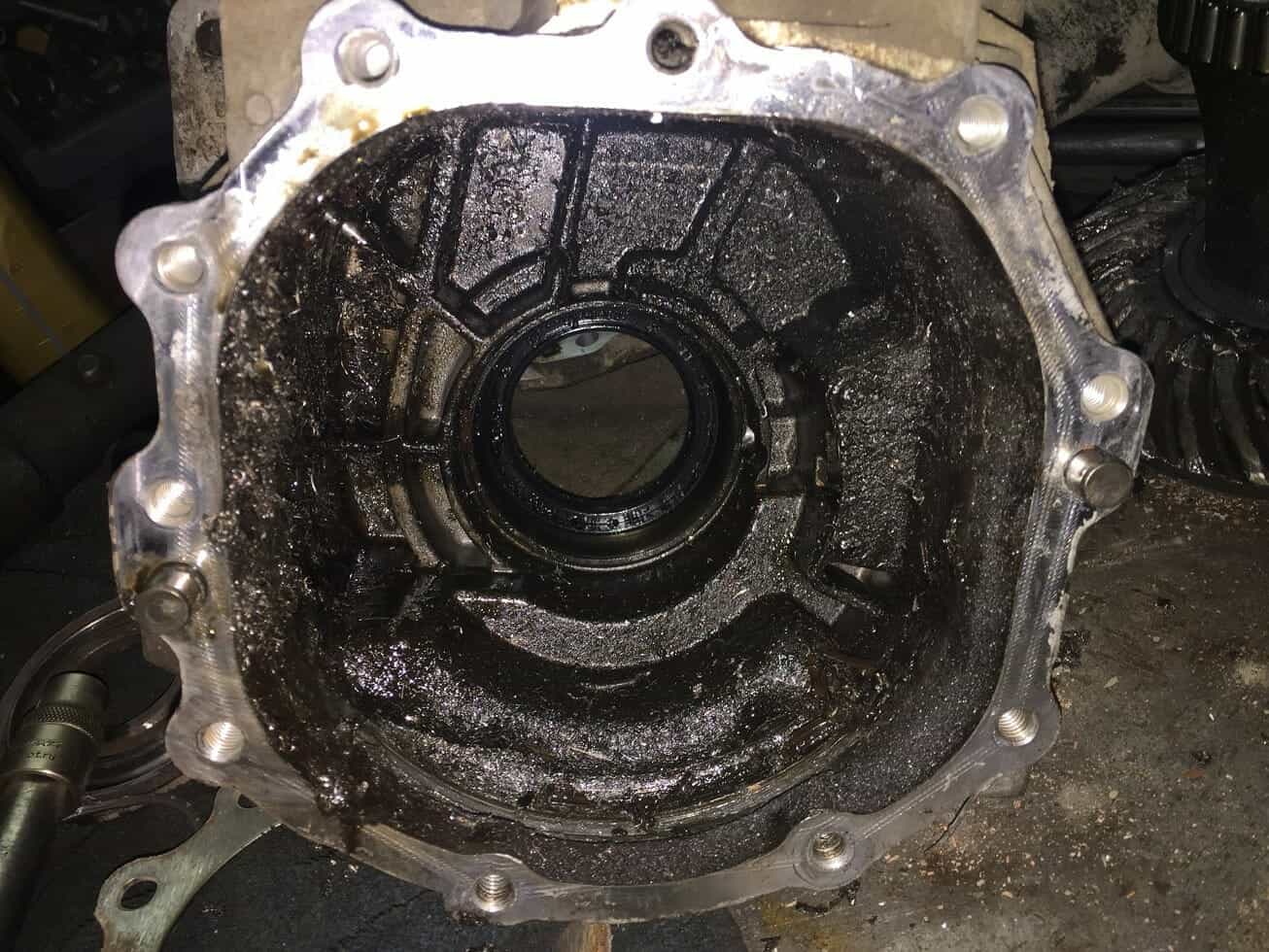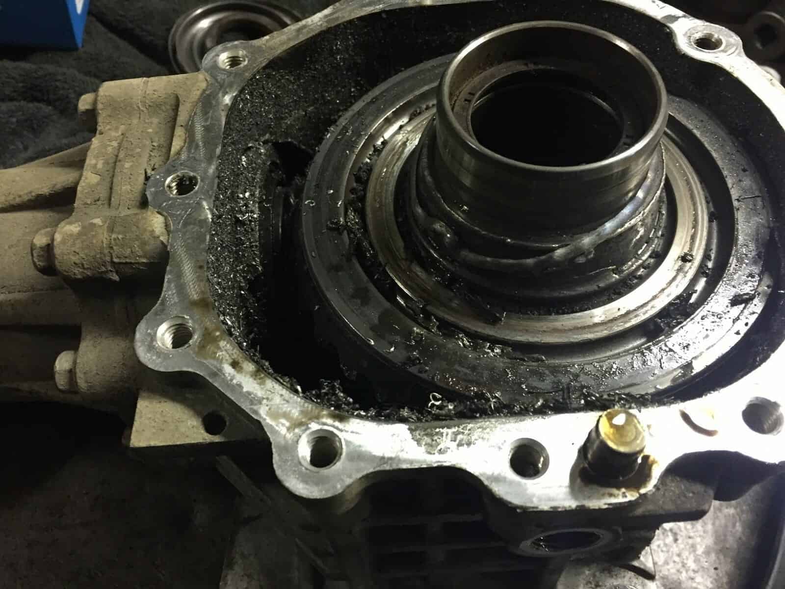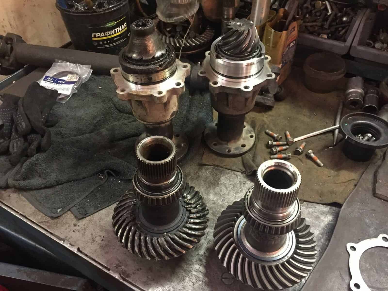 Киа Соренто приехал к нам на замену корпуса дифференциала. Диагностику мы не делали, запчасти были куплены со слов клиента. Во время разборки раздаточной коробки увидели следующее….. Масла в раздаточной коробке не было.